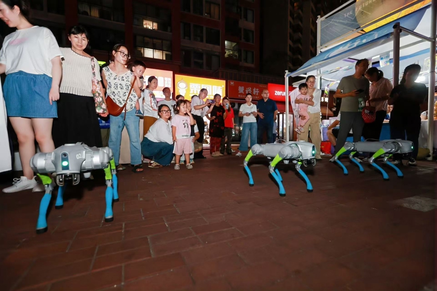 其中,“马桥古韵”板块通过花灯、诗词、非遗糖画、捏面人等传统互动,再现江南民俗风情;“活力今朝”板块融合月饼品鉴、网球互动等现代元素,展现非遗与当代消费的有机融合;“智汇未来”板块则借助鲸鱼机器人、VR灯光秀、机器狗巡游等科技项目,探索传统文化在数字化时代的新表达。